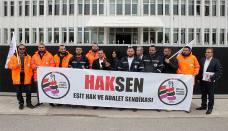 Eşit Hak ve Adalet Sendikası (HAK-SEN) yetkilileri, Kıbrıs Türk Kıyı Emniyeti ve Gemi Kurtarma Şirketi'nde işten çıkarılan personel ile birlikte, Başbakanlık önünde basın açıklaması yaptı.
