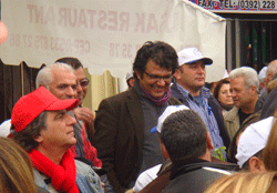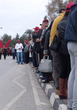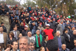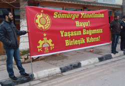| Kamu - İş üyelerinin etkin bir şekilde mitinge katıldığı görüldü. | Toplanma alanına ilk gelen örgütlerden Kıbrıs Sosyalist Partisi, "Sömürge Yönetimine Hayır! Yaşasın Bağımsız Birleşik Kıbrıs" pankartıyla dikkat çekti. KSP üyeleri, kortejlere kendi bildirilerini de dağıttı. | CTP'li gençler slogan ve marşlarla coşkulu bir kortej oluşturdu. Çaldıkları marşlar, davul ve borazanlarıyla renkli görüntülere sahne olan CTP'li gençler, objektiflerimize böyle poz verdi. |