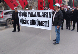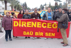 | Sendika üyelerinin çok büyük oranda mitinge katılım gösterdikleri dikkat çekti. | Eylemciler, yaratıcı pankart ve dövizlerle eyleme renk kattı. | Hasan Sarıca da mitinge katıldı... |