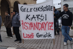 | Liseli gençler de taleplerini dile getirmek için sokaklara indi. "Geleceksizliğe karşı isyandayız" pankartı arkasında yürüyen liseli gençler, hükümete tepkilerini dile getirdi. | Davullar eşliğinde ritm tutarak slogan atan gençlerden birisinin kafasındaki "Kızılderili Şefi" kostümü, oldukça ilginç görüntülere sahne oldu. | Sağlık Çalışanları Sendikası (Sağlık - Sen) de mitinge katıldı. |
