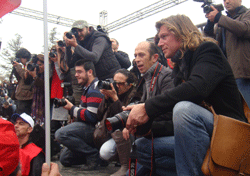 | İnönü Meydanı, mitinge katılan kalabalığa yetmedi... | Sendikalar ve Siyasi Parti`ler mitinge kendi bayrak ve pankartları ile katıldılar. | İnönü meydanında düzenlenen mitinge yerli basının yanında yabancı basın da yüksek katılım gösterdi. |