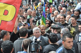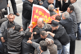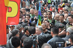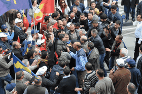 Devrimci İşçi Sendikaları Federasyonu (Dev-İş) Başkanı Mehmet Seyis, mitingin sonunda, AA muhabirine yaptığı açıklamada, ''Bazı küçük grupların, ne zaman bir kalabalık görseler, kendi görüşlerini yansıtmayı bir alışkanlık haline getirdiğini'' belirterek, ''O kitlenin önüne 5 kişi, 10 kişiyle girip, sanki bütün kitle onların görüşlerindeymiş gibi yansıtmaya çalışıyorlar'' dedi.