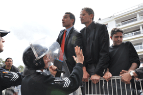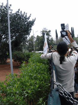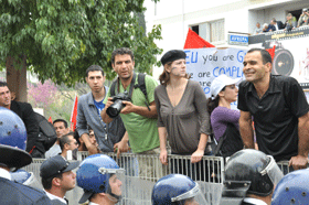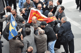 Daha önceki mitinglerde açılan ve tepki çeken bazı pankartlar ve sözde "Kıbrıs Cumhuriyeti" bayrakları bugünkü eylemde de bazı marjinal gruplar tarafından açıldı. ''Yaseminler'' olarak bilinen gruptan bir kişi, elinde salladığı bayrağını Türkiye Büyükelçiliği bahçesinin tellerine asınca polis müdahale etti.