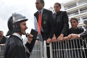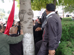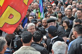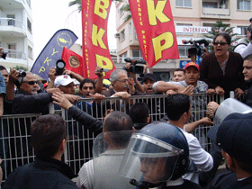 Sendikal Platform'un düzenlediği mitingde, bazı marjinal grupların tahrik eylemleri ön plana çıktı. Mitingde, marjinal gruplar tarafından açılan ''İşgalci TC Kıbrıs'tan defol'' yazılı pankarta polis müdahale etti. Pankartı almak isteyen polise eylemciler tepki gösterdi. Polisi, eylemcilerin arasından, olaya müdahale eden diğer polisler kurtardı.