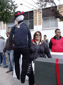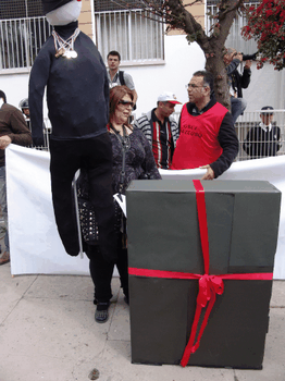 Meclis yanında, ekonomik uygulamayı temsilen paket, hükümeti temsilden de kukla maketi yakıldı.