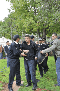 Polis, miting sırasında, Kıbrıs Türk Hava Taşıyıcıları Çalışanları Sendikası'ndan (Hava-Sen) bir kişiyi gözaltına aldı. Buna tepki gösteren eylemciler, söz konusu kişinin serbest bırakılmasını talep etti.
