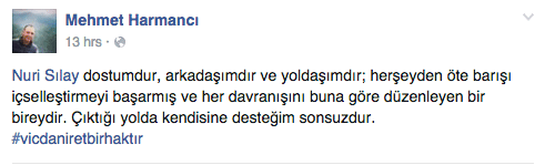 Harmancı, kişisel Sosyal Medya hesabından yaptığı açıklamada, çıktığı yolda Nuri Sılay'a desteğinin sonsuz olduğunu kaydetti.