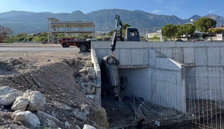 Araç, yaklaşık 6 metre derinliğindeki dere yatağına düşerek tavanı üzerinde durdu.