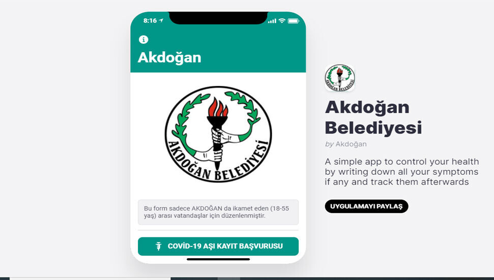 Akdoğan Belediyesi, beldenin ihtiyaç duyduğu Koronavirüs aşı miktarını belirlemek amacıyla bir çalışma başlatarak, bu amaçla 'Dijital Aşı Kayıt Form' uygulamasını hayata geçirdi.