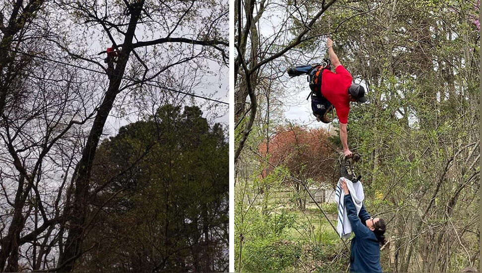 Heringer en son Williams Ağaç Bakım Servisi'yle iletişime geçti. Servisten Clint adlı bir kişi, yanında getirdiği ekipmanı kullanarak ağaca tırmandı.