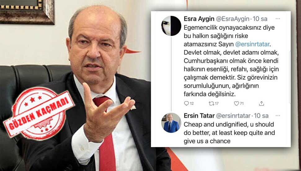 Cumhurbaşkanı Ersin Tatar, Esra Aygın'ın aşı ile ilgili kendisine yönelik eleştirilere sert yanıt verdi.