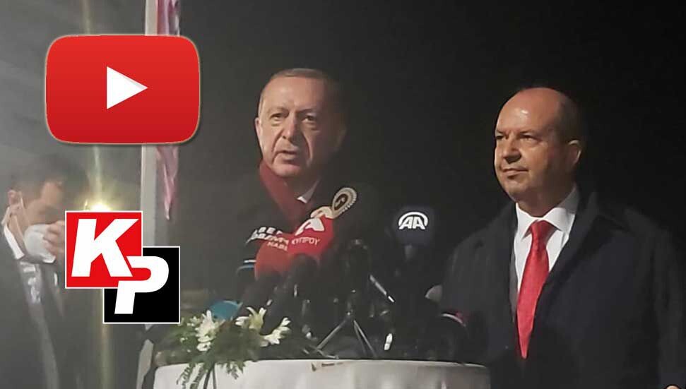 Ersin Tatar ile birlikte basın açıklaması düzenleyen Erdoğan, “Öncelikle sizlerle KKTC’nin 37’nci yıldönümünde bir arada olmanın mutluluğunu yaşıyoruz” diyerek sözlerine başladı.