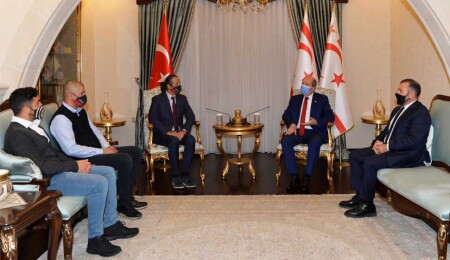 Cumhurbaşkanı Ersin Tatar, KKTC Hentbol Federasyonu Başkanı Bahadır Ayhan ve beraberindekileri kabul ederek görüştü.