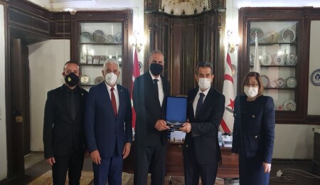 Görüşmenin sonunda K.T. Belediyeler Birliği ve Güzelyurt Belediye Başkanı Mahmut Özçınar ile Türkiye Belediyeler Birliği ve Gaziantep Büyükşehir Belediye Başkanı Fatma Şahin, Türkiye Belediyeler Birliği Genel Sekreteri Birol Ekici ile K. T. Belediyeler Birliği Genel Koordinatörü Hüseyin Köle arasında hediye ve plaket takdimi yapıldı.