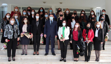 Başbakan Ersan Saner, üst düzey kadın bürokratları kabul etti ayrıca Başbakanlık’taki kadın pesonelin gününü de çiçek takdim ederek kutladı...