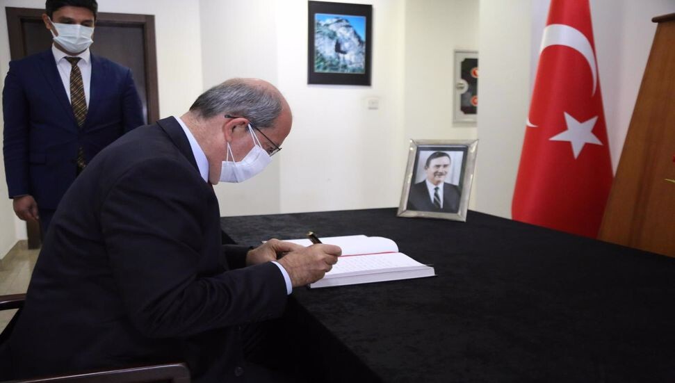 Cumhurbaşkanı Ersin Tatar, Türkiye'nin eski başbakanlarından Yıldırım Akbulut için Büyükelçilik’te açılan taziye defterini imzaladı.