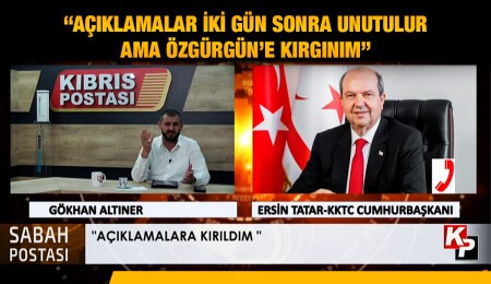 Cumhurbaşkanı Ersin Tatar, Kıbrıs Postası TV’de gündemi sarsan açıklamalarda bulunan UBP Milletvekili Hüseyin Özgürgün’e, yine Kıbrıs Postası üzerinden yanıt verdi. Tatar, “Açıklamalar iki gün sonra unutulur ama kendisine kırgınım. Mümkün mü kırılmamak?” dedi.