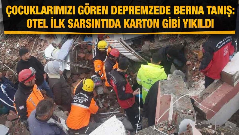 Kendi imkan ve arkadaşları vasıtasıyla enkazdan kurtulan Berna Tanış, “Otel ilk sarsıntıda yıkıldı.. Adeta bir karton gibiydi…” ifadelerini kullandı.