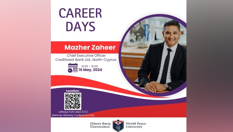 Dünya Barış Üniversitesi’nin ilk Kariyer Günleri etkinliği 16 Mayıs'ta LTL Mehmet Altınbaş Konferans Salonu'nda gerçekleştirilecek.