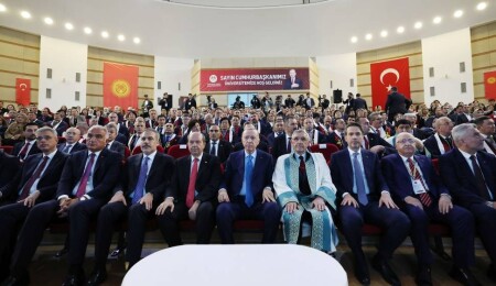 Tatar, Cumhurbaşkanı Recep Tayyip Erdoğan ile birlikte Kırgızistan-Türkiye Manas Üniversitesi'ni ziyaret etti.