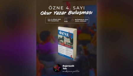 “Devrimci Talepler ve Bağımsızlık Yolu” dosya konusu ile Sonbahar 2024, 4. Sayısı ile yayınlanan Özne dergisi yazarları ve okurlarını bir araya getirmeyi amaçlayan etkinlik, 14 Nisan 2025 Pazartesi günü, saat 19:00’da Bağımsızlık Yolu Parti Genel Merkezi’nde gerçekleşecek.