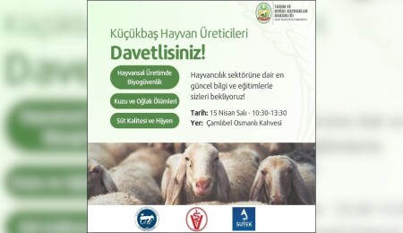 Tarım ve Doğal Kaynaklar Bakanlığı’na bağlı Hayvancılık Dairesi, Veteriner Dairesi ve Süt Endüstrisi Kurumu (SÜTEK) iş birliğinde, küçükbaş hayvan üreticilerine yönelik yarın eğitim düzenleniyor.