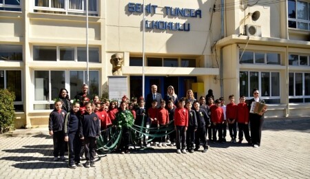 Şehit Tuncer İlkokulu 3’üncü sınıf öğrencileriyle müzik öğretmenleri Tienşan Çaydamlı, Tatar’ı “Orman Olalım” şarkısı ve dans gösterisiyle karşıladı.