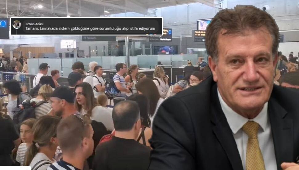 Bayındırlık ve Ulaştırma Bakanı Erhan Arıklı, Larnaka Havalimanı’nda pasaport kontrol sisteminin çökmesinin ardından yaptığı yorum ile güldürdü, "Sorumluluğu alıp istifa ediyorum" ifadelerini kullandı.