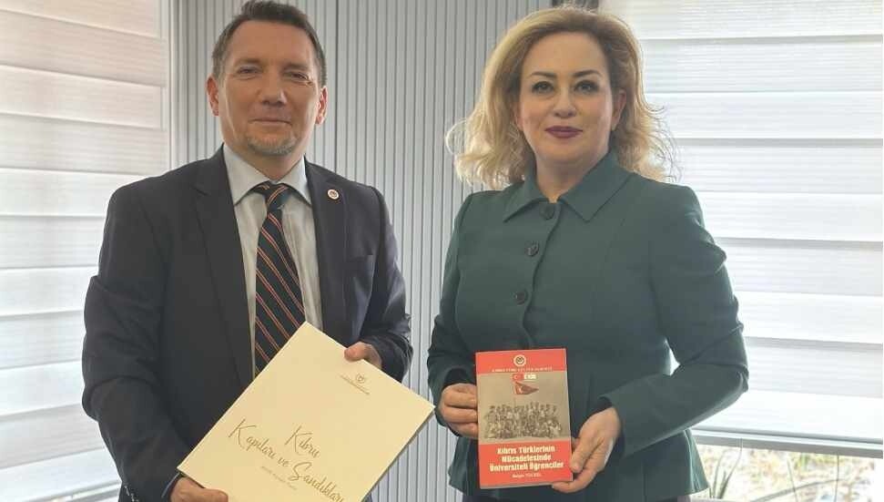 Cumhurbaşkanı Ersin Tatar’ın eşi Sibel Tatar, Ankara’da Kıbrıs Türk Kültür Derneği’ni ziyaret ederek “Kıbrıs Kapıları ve Sandıkları” kitabını hediye etti.