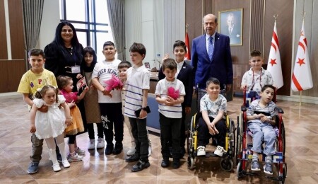 Cumhurbaşkanı Ersin Tatar, 23 Nisan Ulusal Egemenlik ve Çocuk Bayramı nedeniyle Cumhurbaşkanlığı Yeni Yerleşkesinde özel eğitim öğrencilerini kabul etti.