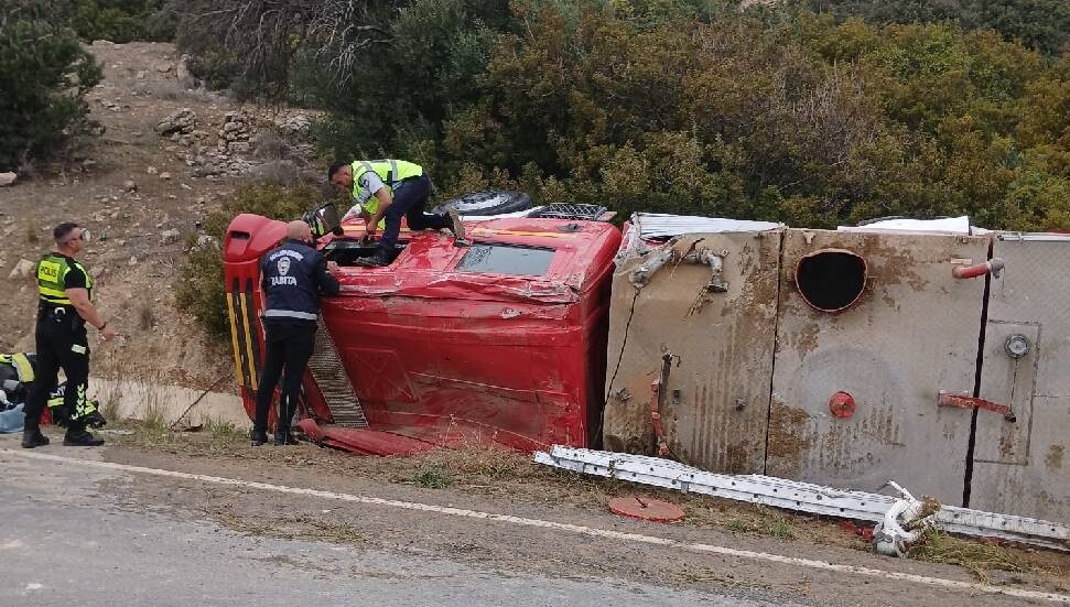 Yangın ihbarına giden itfaiye aracı devrildi: İki itfaiye görevlisi hafif yaralı
