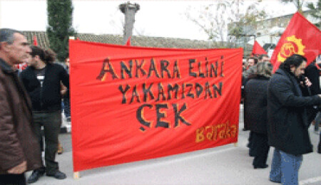 Bugün Mecliste görüşülmesi planlan ancak daha sonra Perşembe gününe ertelenen kaçak işçiye ve yaşama af getiren yasa önerisi ile sosyal sigortalara yönelik yeni tasarı çok sayıda örgüt tarafından meclis önünde gerçekleştirilecek olan mitingle protesto edildi. Mitinge katılan Baraka Kültür Merkezi, meclis önüne gelir gelmez pankartını TC Elçiliği tarafına çeviren Baraka aktivistleri, elçilik aleyhine sloganlar attı.