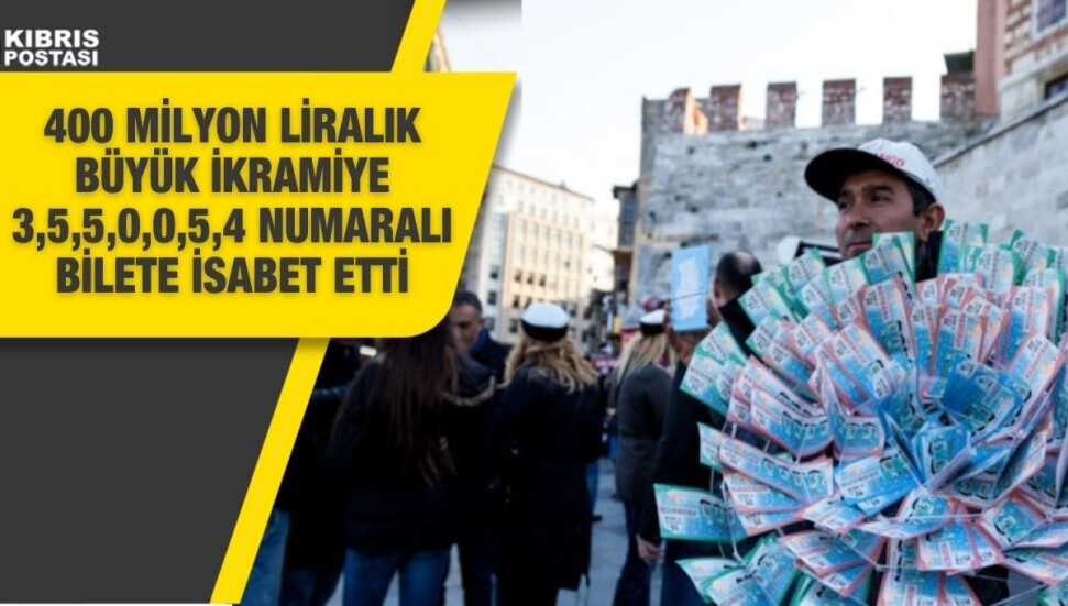 Milli Piyango yılbaşı çekilişinde 400 milyon liralık büyük ikramiye 3,5,5,0,0,5,4 numaralı bilete isabet etti.