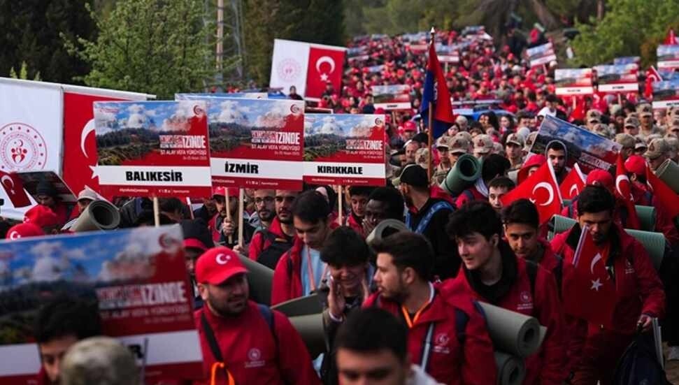 Türkiye İzcilik Federasyonu tarafından düzenlenen 57. Alay Şehitlerini Anma Milli Bilinç Kampı kapsamında saçlarına kına yakılan ve asker çorbası içen 2 bin 750 izci, 57. Alay'ın 110 yıl önce yürüdüğü yolda ecdadı andı.