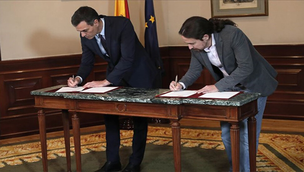 Sanchez ve aşırı sol görüşlü Unidas Podemos ittifakı lideri Pablo Iglesias mecliste bir araya gelirken, iki lider hükümet kurulması için ön anlaşma imzaladı.
