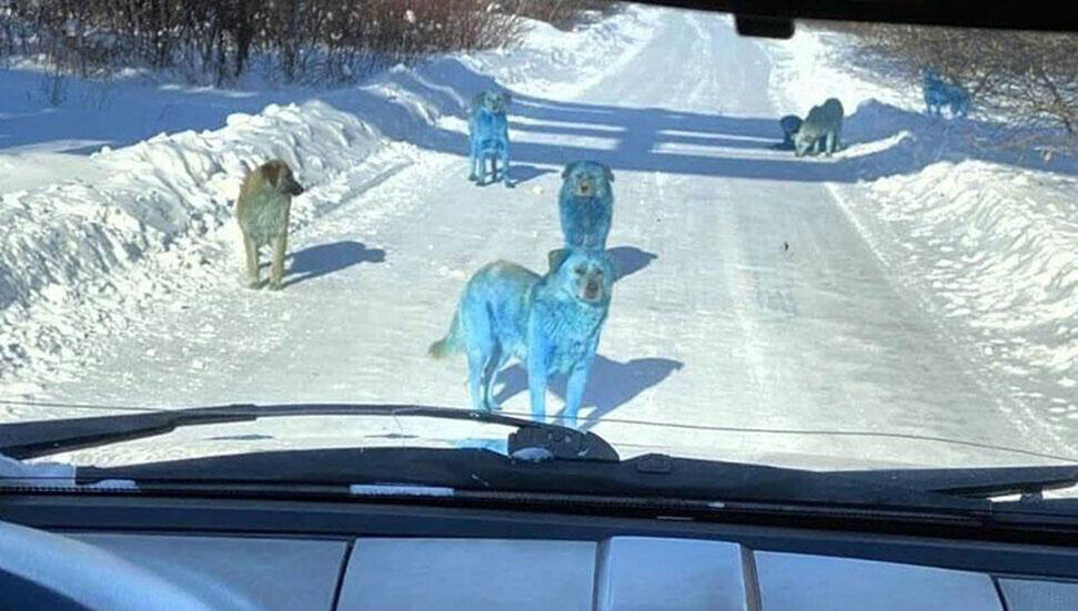 Rusya’da bir kimya fabrikası çevresinde görülen mavi renkteki köpekler bölge halkında büyük paniğe neden oldu.