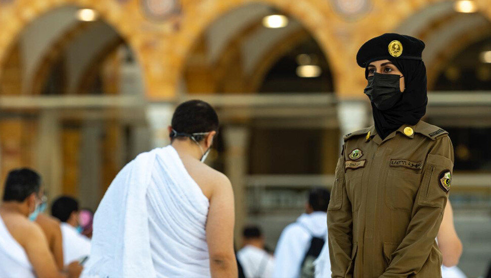 Suudi Arabistan İçişleri Bakanlığı, resmi Twitter hesabından bölgede devriye yapan kadın güvenlik görevlilerinin fotoğraflarını, "Bölgeden. Hac ve umre ziyaretlerindeki güvenlik görevlileri" mesajıyla paylaştı.