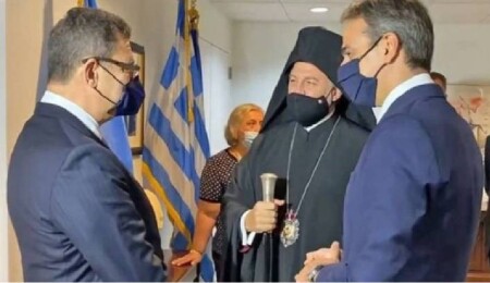 Miçotakis, Türkevi açılışına katılan Başpiskopos Elpidoforos ile görüştü