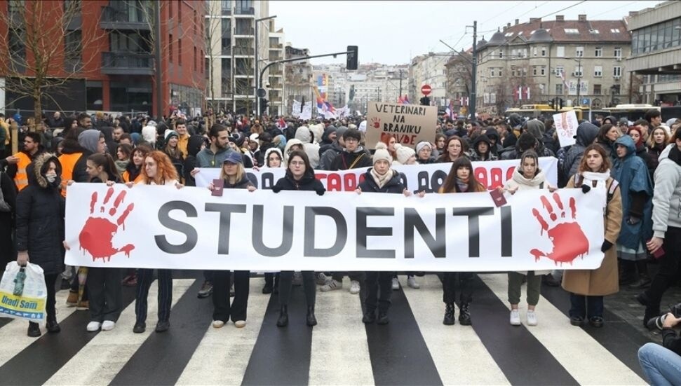Sırbistan'da hükümete tepkili binlerce öğrenci başkentin önemli kavşağını trafiğe kapattı