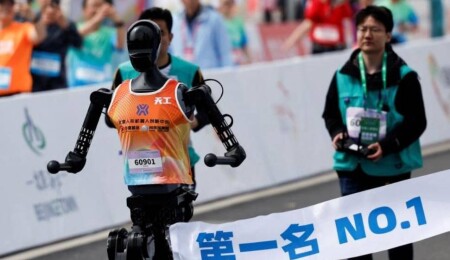 Çin'den gövde gösterisi: Yarı maratonda robotlar insanlarla yarıştı
