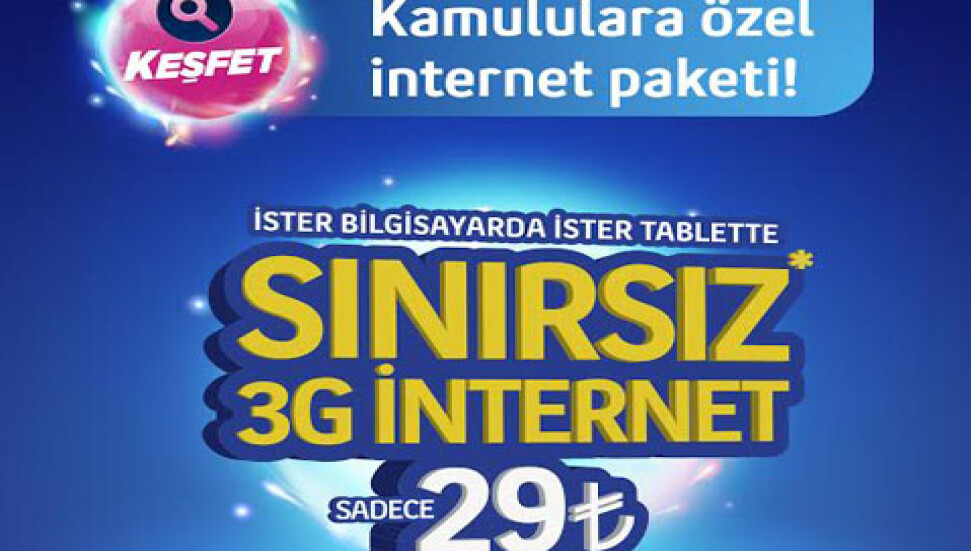 Faturalı hat kullanan tüm kamu çalışanlarının günün her saatinde kullanabileceği ve bitmeyen internet paketi sadece 29 TL'ye tüketicisine sunuldu.