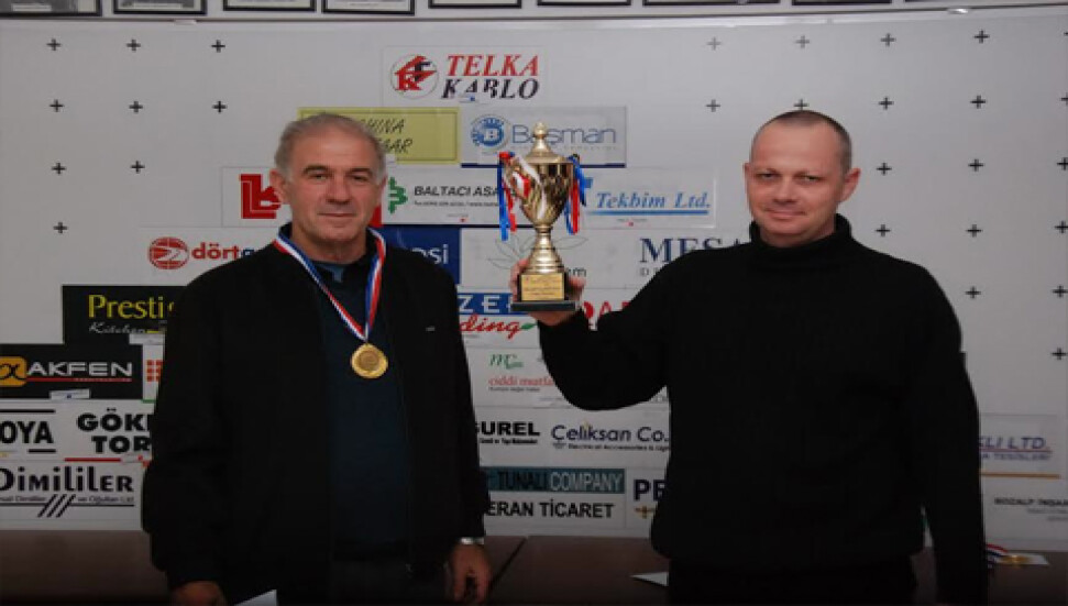 Telka Kablo basamağına ulaşan Cengiz Hasman'a ödülünü Lefkoşa Satranç Derneği Başkanı Halil Tozakı verdi.