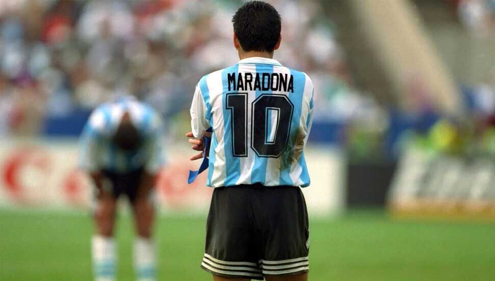 Arjantin'in 1990 Dünya Kupası'nda finale yükselmesinde büyük pay sahibi Maradona'nın uyuşturucu sorunu, 1991'de kamuoyuna yansıdı. Aynı yıl uyuşturucu kullanmaktan 15 ay ceza alan ünlü futbolcu, yasaklı madde kullandığı gerekçesiyle 1994 Dünya Kupası'ndan ihraç edildi.