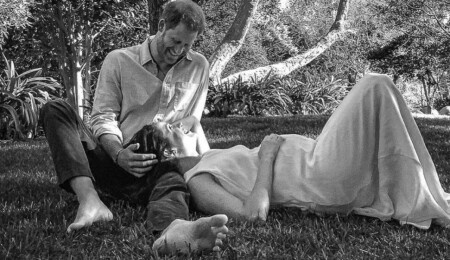 Çift bu yıl Sevgililer Günü'nde ikinci defa çocuk sahibi olacaklarını duyururken Meghan'ın karnının dikkat çektiği siyah beyaz bir fotoğraf paylaştı.