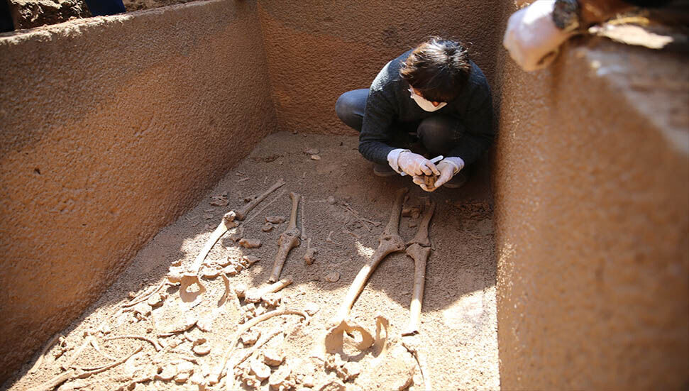"Mezarın içinde bir bay ve bayanın iskeletleri var. Burası 2 bin 400 yıllık bir yer. Milattan Önce 4. yüzyıla ait Halikarnasosun bir doğu nekropol kısmı olduğu düşünülüyor. Bizi sevindiren yanı hiç bozulmamış olması. Hiçbir yerden de hasar almamış gömüldüğü gibi kalmış. İçindeki malzemelerde hiçbir sarsıntıdan etkilenmemiş."