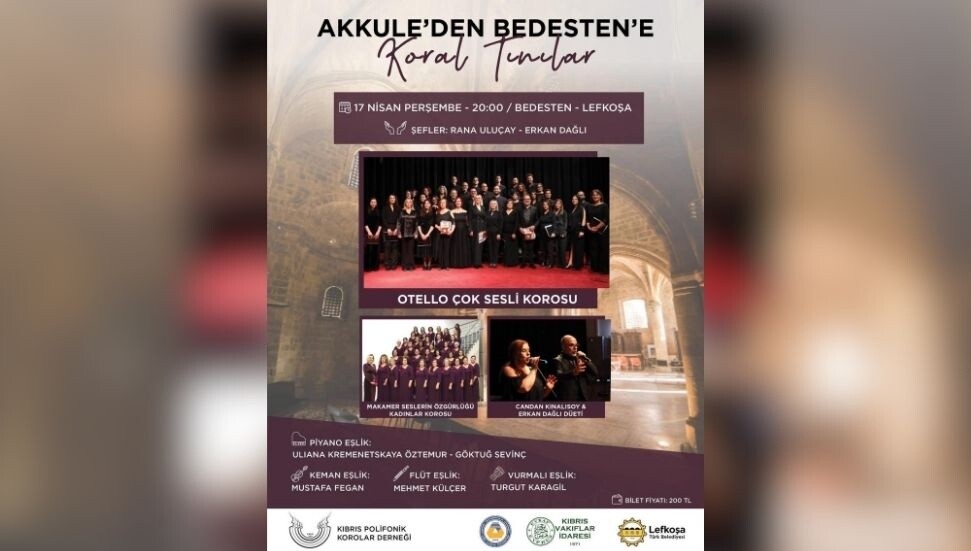 “Akkule’den Bedesten’e Koral Tınılar” konseri 17 Nisan'da Lefkoşa’da sanatseverlerle buluşacak.