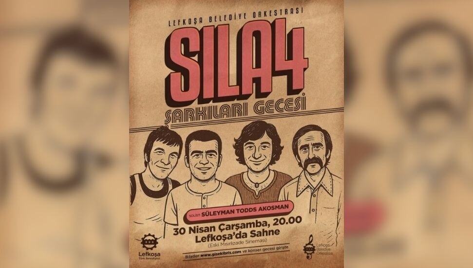 Kıbrıs Türk müziğinin efsane topluluğu Sıla 4’ün unutulmaz eserleri, Lefkoşa Belediye Orkestrası tarafından 30 Nisan’da Eski Mısırlızade Sineması’nda seslendirilecek. Gecede solist Süleyman Todds Akosman olacak.