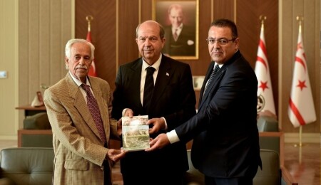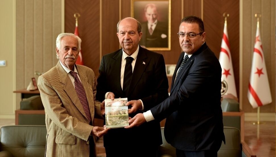 Cumhurbaşkanlığı yeni yerleşkesinde Cumhurbaşkanı Ersin Tatar’ın makam odasında gerçekleştirilen kitap tanıtımında, Mustafa Haşim Altan ve Gökhan Güler de hazır bulundu.