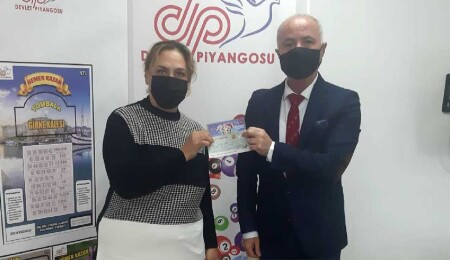 KKTC Piyangolar Birimi’nden yapılan açıklamaya göre, ‘65432’ numaralı bilete isabet eden 400 Bin TL’lik büyük ikramiye, Fetine Uğurlu tarafından teslim alındı. İkramiye teslimi sırasında konuşan Piyangolar Birimi Sorumlusu Osman Yıldızev, Piyangolar Birimi’nin tüm şeffaflığıyla ikramiyelerini dağıttığını vurguladı. Kazananı tebrik eden Yıldızev, paranın sağlıklı ve güzel günlerde kullanması temennisinde de bulundu.