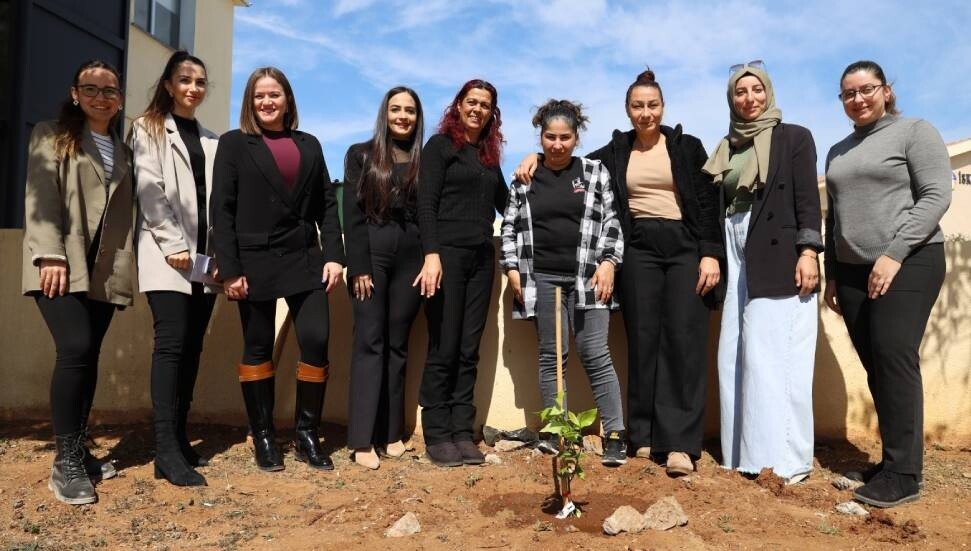 İskele Belediyesi'nin kadın personeli, belediye binasının önüne limon fidanı dikti.